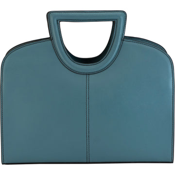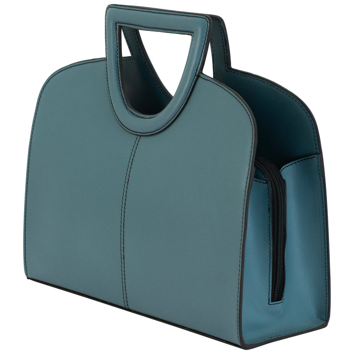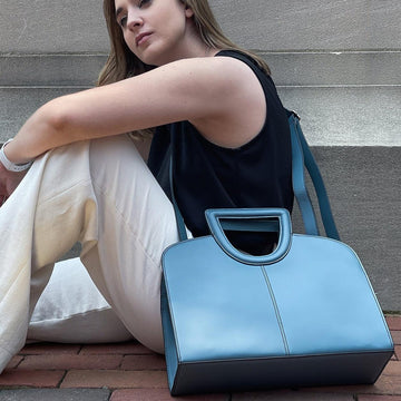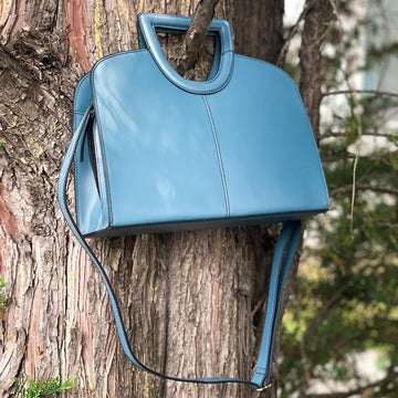 The Clarice Structured Tote is a perfect blend of style, functionality, and security. This medium-sized tote is crafted from 100% genuine cowhide leather, and dyed a stunning shade of blue. The structured handles add a unique accent.